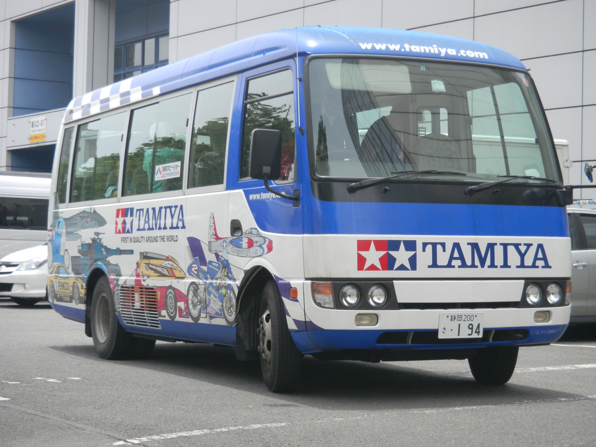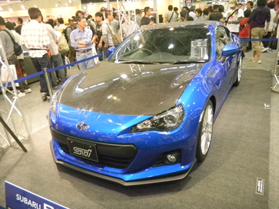 Left: The Tamiya bus, yay. Right: The Subaru BRZ car on display in Tamiya's display area.