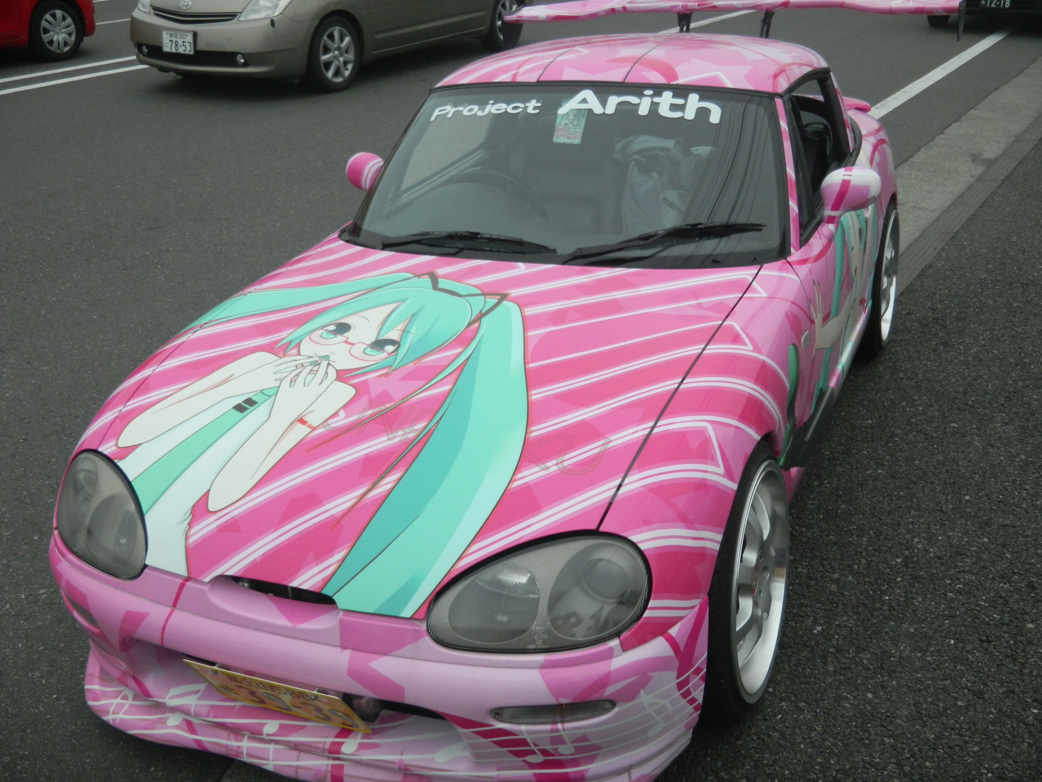 Left: This Miku car was parked out in front of the event. Right: The Twin Messe, where the event was held.