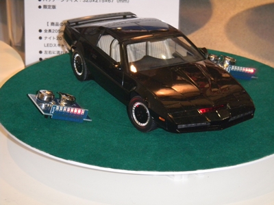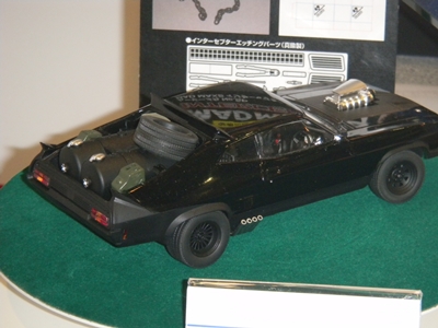 Cars from Night Rider and The Road Warrior on display.
