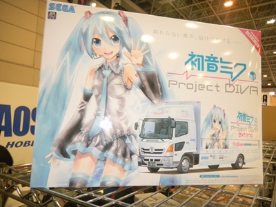 Left: The Hatsune Miku truck was available for purchase at the Aoshima booth. Right: This is a Hasegawa model of the SR-71 Blackbird, but with IDOLM@STER decals. I told the gentlemen at that booth that my dad was part of the project that worked on the Blackbird, and they were impressed.