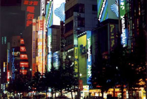 That night, I took a train to see Akihabara, Tokyo's "Electric Town." This was a real sight to see. All the brilliant signs lit up the night. This was a real experience for me. Any sort of electronics imaginable was being sold in stores that lined the streets, with store clerks beckoning customers saying, "Irrashaimase!" This is where I spent a lot of money on video games and movies. It's also interesting to see all sorts of gadgets that have yet to make their way out of Japan. I was surprised to see how small their cell phones were, which made the most compact American cell phone look big.