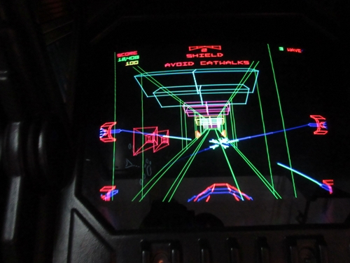 The location is not what I expected, as it is in a business park rather than a strip mall. We arrived around sunset. From 7pm to 11pm on weekends, one can pay an entrance fee of $15 and enjoy all-you-can play arcade and pinball games while absorbing the wonderful retro ambience. Aside from all of the great games, Starfighters features awesome movie posters, toys from our childhood, great '80s music, and other nostalgia. When I first walked in, a Psychedelic Furs song was playing. Some non-functioning sit-down cabs were lined up by the entrance, which was unfortunate because Atari's Red Baron was one of them.