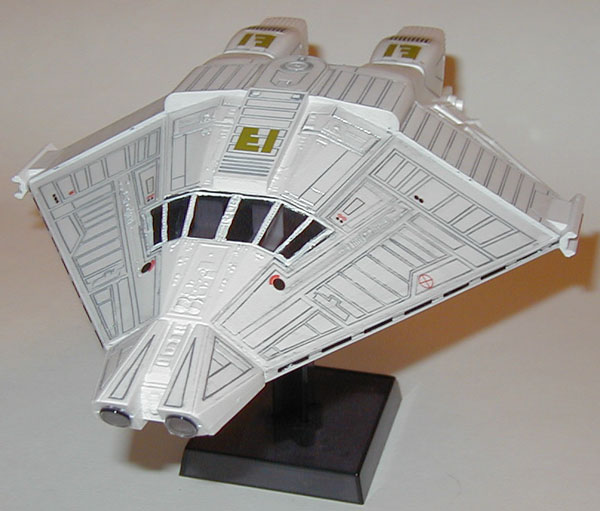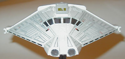 The Narcissus is my favorite ship from the Alien series. Yes, even more than the Sulaco. I just love this shuttle. But yes, the nose of this model is just as bad as the rumors say. But other than that, it really wasn't so bad to put together. I painted dark gray into all the cracks and wiped off the excess with a paper towel soaked in thinner, leaving only the paint in the cracks for detail. I really wish I knew about Gundam markers in November of 2005 when I built this model, because it would have made this a lot easier. I did not bother detailing anything inside the cockpit because the windows are so dark anyway that it wouldn't have made a difference. I wish I didn't bother putting on the red "EI" decals on the ship, because the Narcissus didn't have this in the movie anyway.