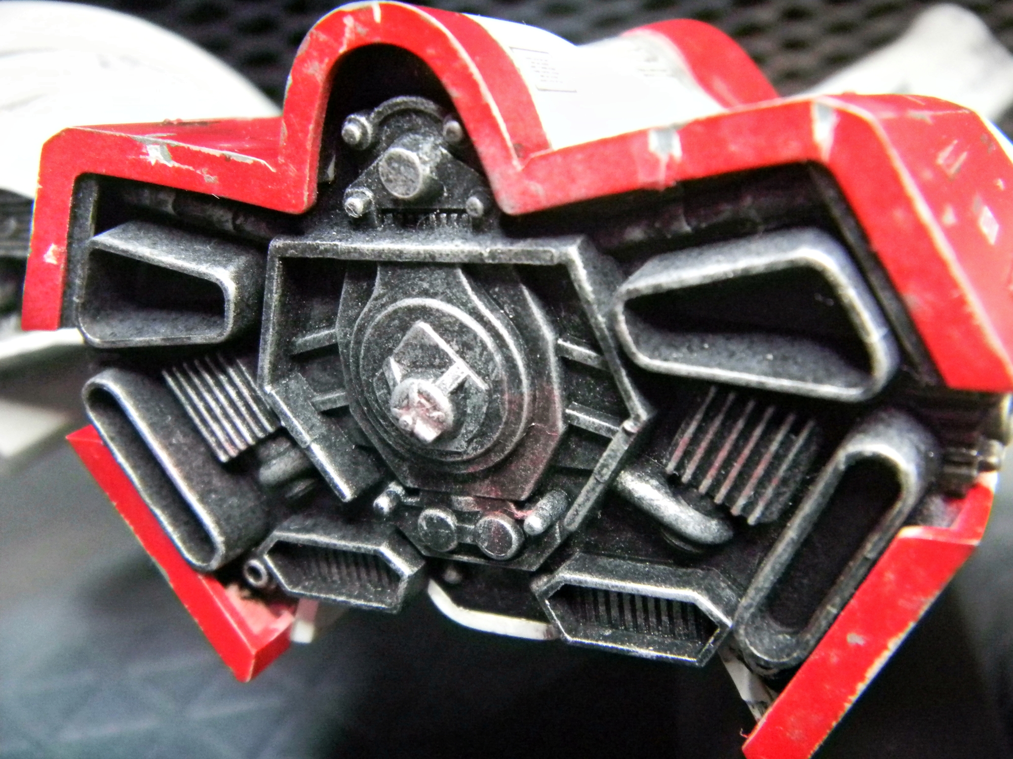 I used the Nouvel Carre pastel chalks to really dirty up this ship. I carved some blast points into the surface of the model before painting, I dotted those with Testors silver enamel before the matte clear coat, and then applied the chalk. The color of chalk I used for rust didn't really stand out when applied, until I got it wet. (I actually didn't use water because I didn't feel like getting up. I admit that I just used a bit of spit. :D ) You won't see that in the video though. I'd feel silly showing that in the video of the build.