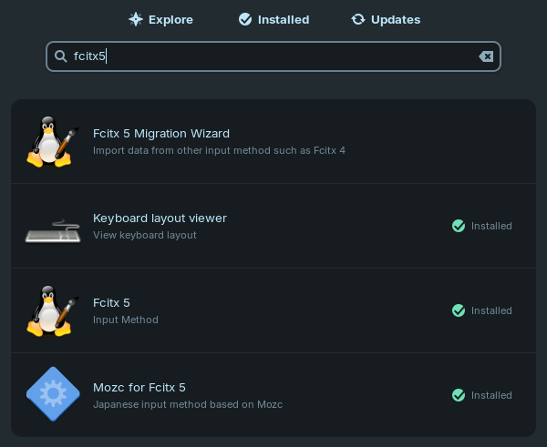 In order to configure your Linux computer to input Japanese text, you will need two programs: Fcitx5 and Mozc. Fcitx5 is the program which enables non-Roman language input and Mozc is what Fcitx5 uses to input Japanese. After installing these programs through either the software installer or package installer, you should see a keyboard icon appear on your panel. If not, a reboot may be required. I’m going to show you how to do this in Zorin OS. From my experience, this is pretty much the same in both Mint and Raspberry OS, so I imagine it’s the same for other Linux distributions. Don’t worry about the Fcitx5 Migration Wizard. That’s only for if you are migrating from version 4 to version 5. After installing these programs, this is what my Software installer shows: