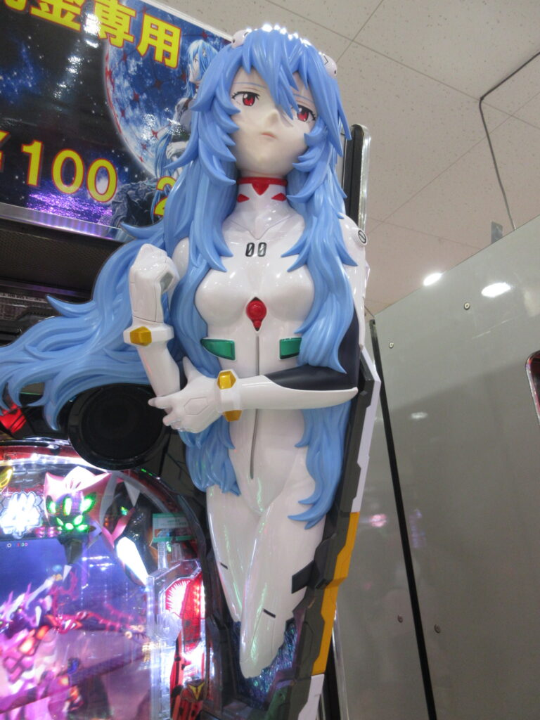 There was this nice sculpture of Rei on an Evangelion pachinko machine. I don’t ever remember seeing Rei with long hair. Maybe it’s from one of the new movies I never bothered watching.