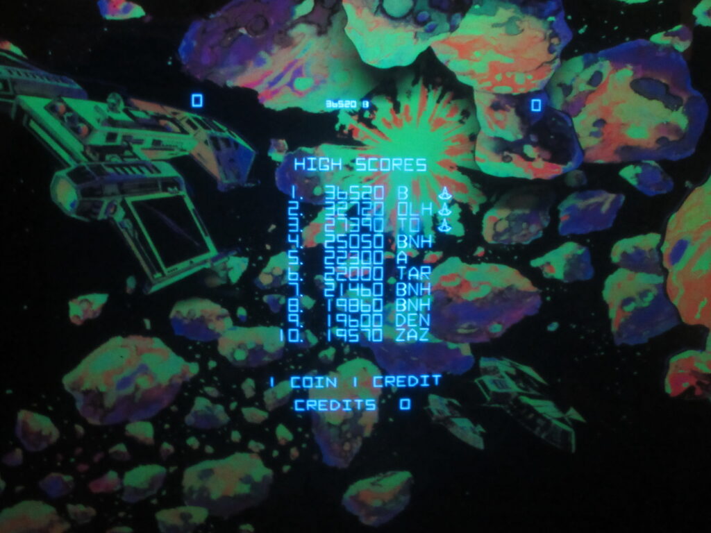 Somehow, the arcades when I was a kid only had Asteroids and not Asteroids Deluxe. The 3D look to Asteroids Deluxe is quite exquisite, with the background and the vector graphics projected onto it. Fantastic.