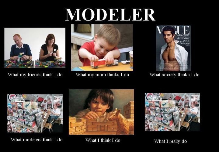 This is a bit too claustrophobic for my tastes. This guy is working on a Ma.K kit. He’s got paint bottles to the right. What’s in those boxes? It looks like the room is larger beyond those boxes.