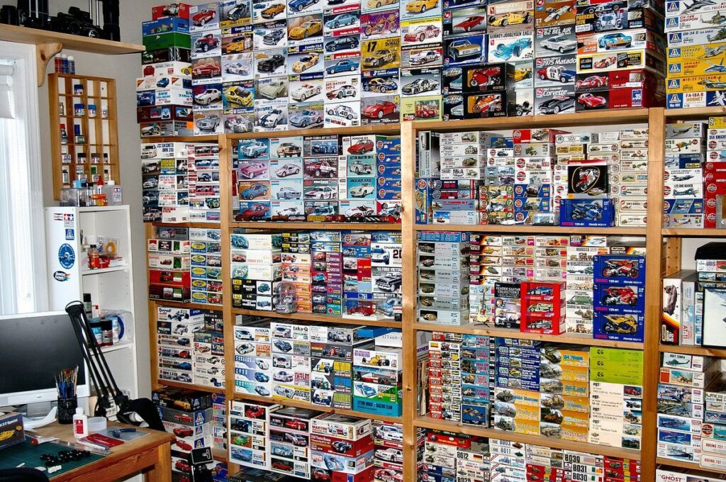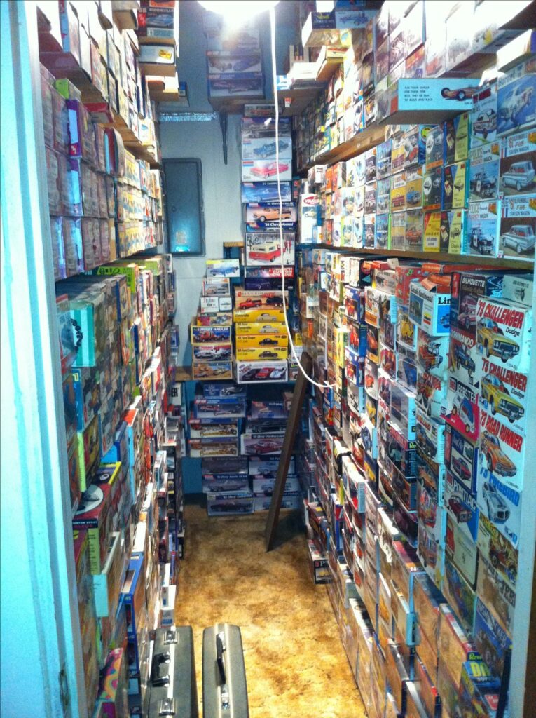 I also came across these photos on Pinterest and realized that they belong together. Here are four tall shelf racks. I love his tastes in models! It’s all character modeling. Can you spot what you like? I see Knight Rider, Mad Max, Gachaman, Star Wars, plenty of Gundam, Yamato, Battlestar Galactica, Star Trek, plenty of Gerry Anderson stuff, Votoms, and of course Macross. He even has that big Mega Force kit! Bonus points for keeping model categories together like that. (Click the images to expand, then open them in a new tab in your browser to see even closer detail to see the boxes.)