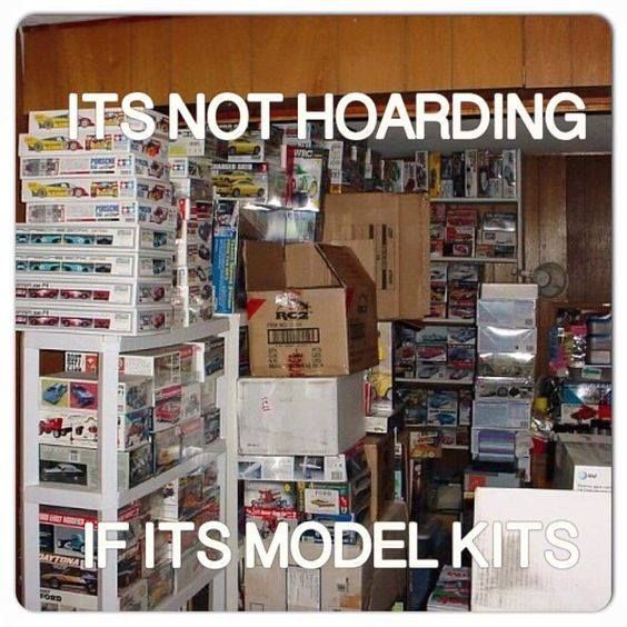 Good golly, that’s a lot of resin garage kits! Super cramped work area too. At least there’s anime to watch.
