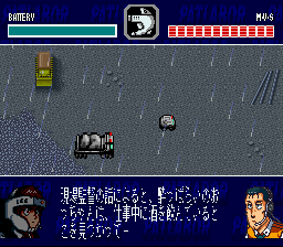 Patlabor was an SF manga/anime series set in the then-immediate future (the late '90s), which would make it an alternate timeline now. A dam has been built across Tokyo Bay, which has been drained for real estate development. This is called the Babylon Project. Giant mecha, or "Labors," have been developed at this time. Some are military, some are for construction. The Patlabor Mobile Police was made to patrol and control the activities of Labors and to make sure that their use is not to be abused. The story for the Patlabor game involves the characters of the SV2 Second Unit. The characters in the game are Captain Gotoh, Forwards Noa Izumi and Isao Ohta, Backups Asuma Shinohara and Takeo Kumagami, drivers Hiromi Yamazaki and Mikiyasu Shinshi, as well as Seitaro Sakaki and Shigeo Shiba. The events of this game start on January 7, 2001. Kanuka Clancy is not in this game, and instead you will see Takeo Kumagami. The uniforms that are worn are that of the manga as opposed to the anime, which would set this game in the manga continuity. Actually, there are at least three continuities for Patlabor: the manga, the OVA, and the TV series. If there are any others, I almost don't want to know.