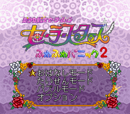Sailor Moon Sailor Stars Fuwa Fuwa Panic 2 is the sequel to Sailor Moon Super S Fuwa Fuwa Panic on the Super Famicom. I do not own the original, but I have played it a bit via the emulator on my Xbox. At first glance at the screenshots, you may expect the gameplay to this puzzle to be like Money Puzzle Exchanger or Magical Drop. BUT YOU'D BE WRONG!
