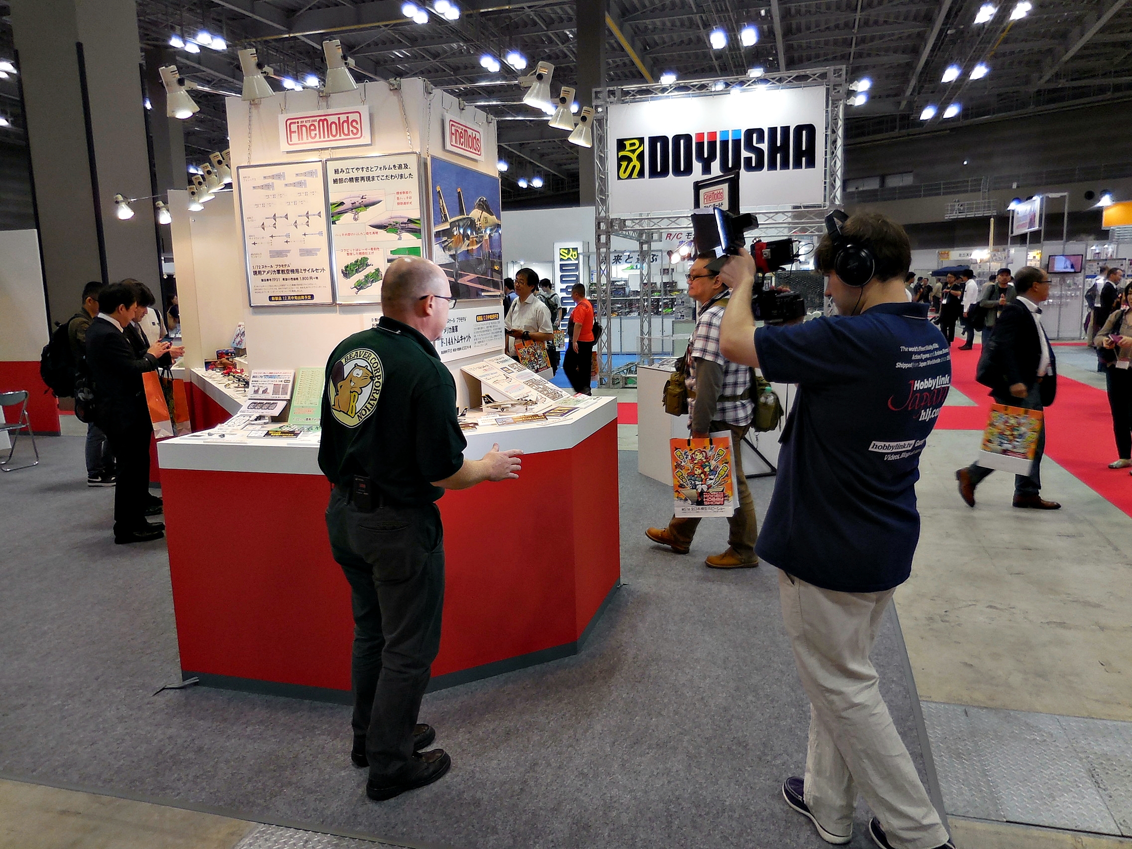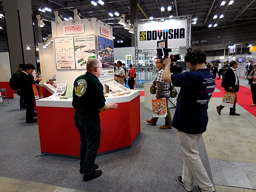 Left: Here is the HobbyLink Japan crew doing their video coverage of the event. Right: Aoshima's booth.