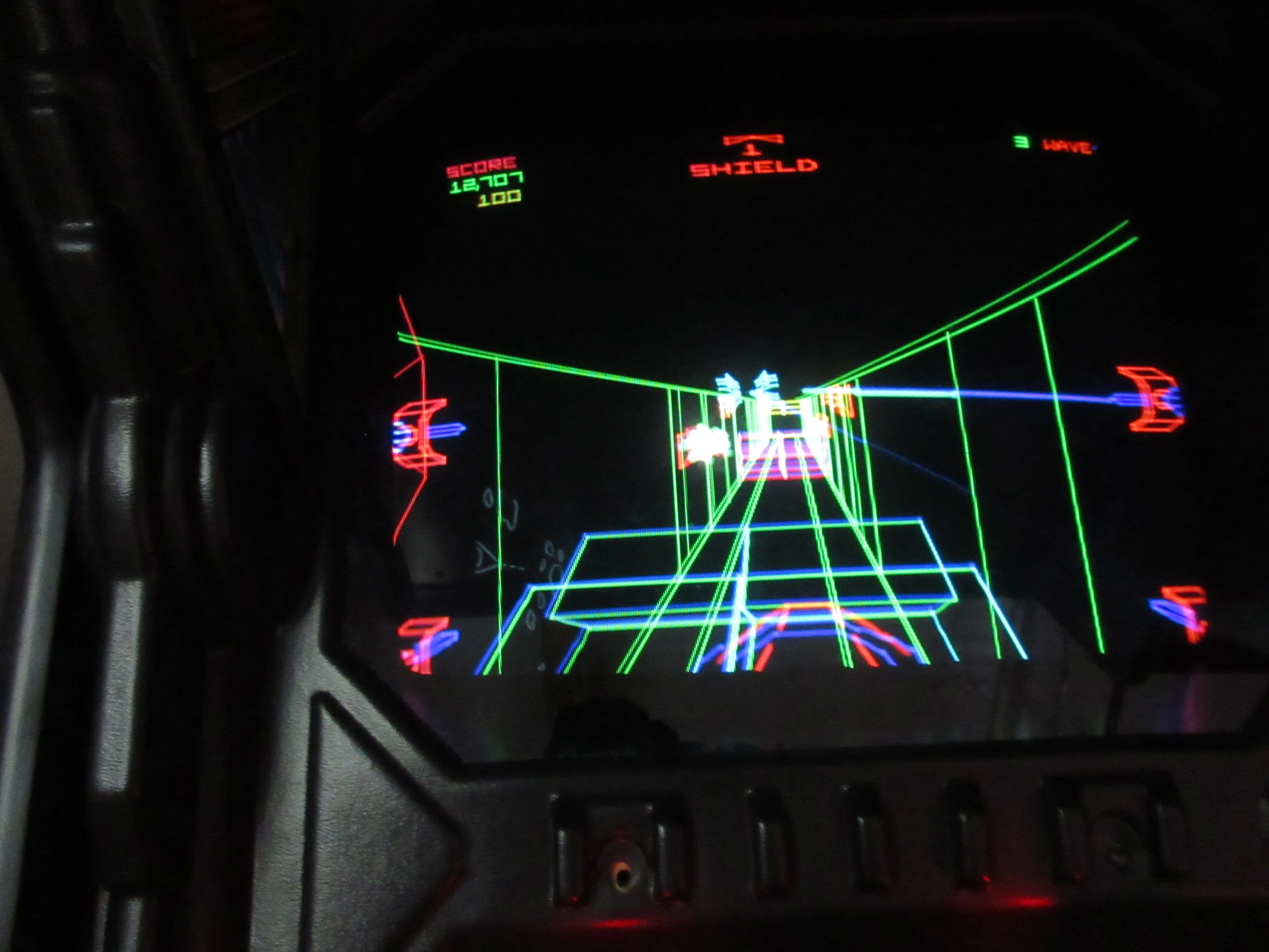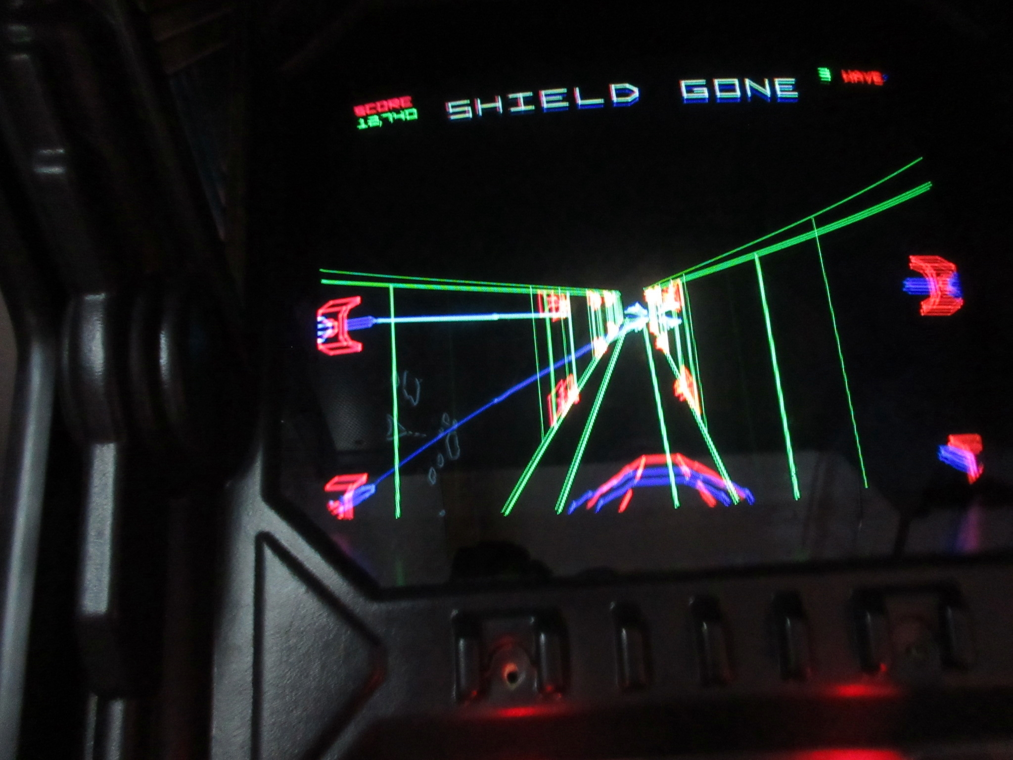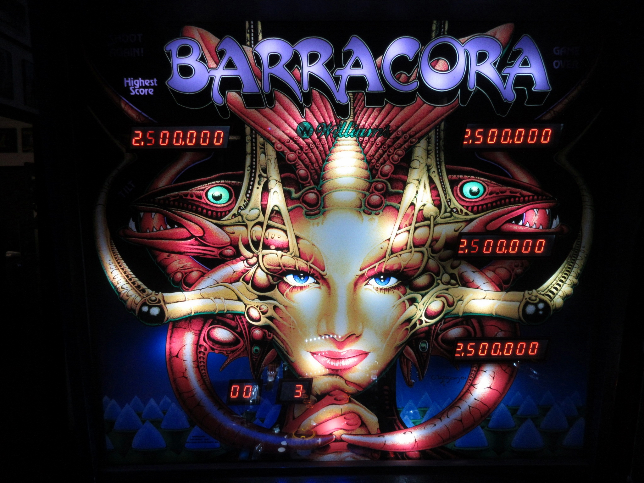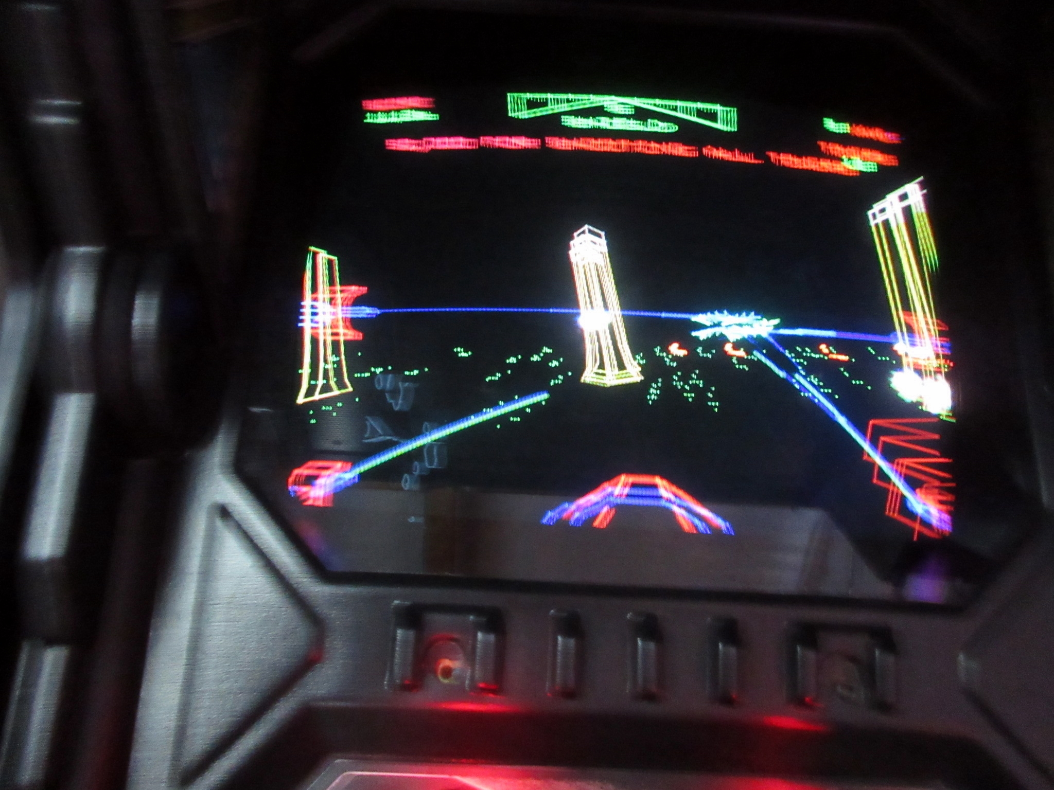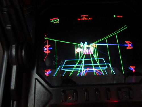 The location is not what I expected, as it is in a business park rather than a strip mall. We arrived around sunset. From 7pm to 11pm on weekends, one can pay an entrance fee of $15 and enjoy all-you-can play arcade and pinball games while absorbing the wonderful retro ambience. Aside from all of the great games, Starfighters features awesome movie posters, toys from our childhood, great '80s music, and other nostalgia. When I first walked in, a Psychedelic Furs song was playing. Some non-functioning sit-down cabs were lined up by the entrance, which was unfortunate because Atari's Red Baron was one of them.
