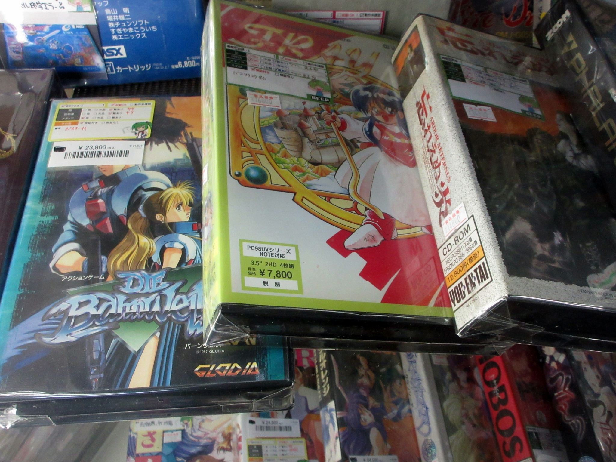 I think I must have ordered something from Beep's online store a long time ago for my friend, because I'm on their mailing list. It's hard to believe that new game software is still being released for old retro computers like the Sharp X68000, but Beep is at the heart of that scene. I must have walked past the store accidentally twice before I found it at last. It's in the basement of a building, and the signage is not where I expected it to be. I had my camera, so I took pictures. The signs in the store say that photography is allowed, but taking videos is not.