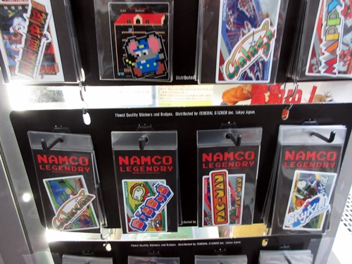 Left: some neat Capcom stuff with a poster for Final Fight and a leather jacket. Right: a Qix cocktail cabinet for sale!