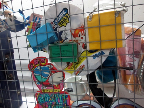 Left: this Hatsune Miku guitar looks cool. Right: when you are at the checkout counter, look up and you will see this stuff above you.
