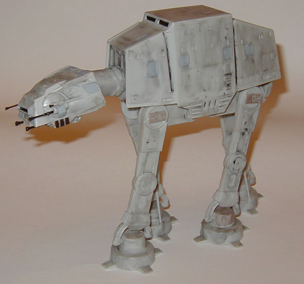 I haven't been too impressed with the quality of AMT/Ertyl models. In high school I had put together an X-Wing model. I had weathered it and made it look real cool, but it was difficult to "lock S-foils into attack position" and the wings were crooked. I ended up throwing it away. This ATAT model wasn't to bad. The legs were somewhat poseable as well as the neck. However, the head and neck are attached to the body by a rubber band in order to pose it. I noticed that the head would droop quite a lot. In the dry Arizona air, the rubber band had started to deteriorate. I decided to just glue the head and neck into place. Also, there were a lot of areas where I had to use my X-Acto knife to whittle down certain parts to get them to fit together properly.