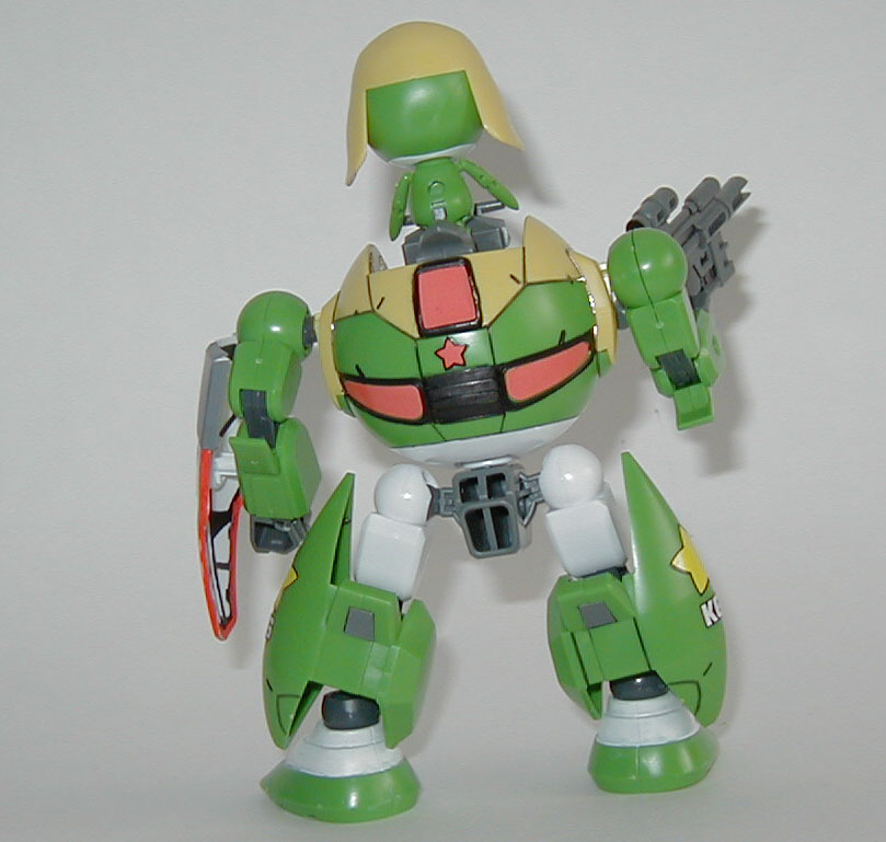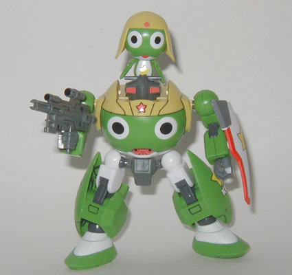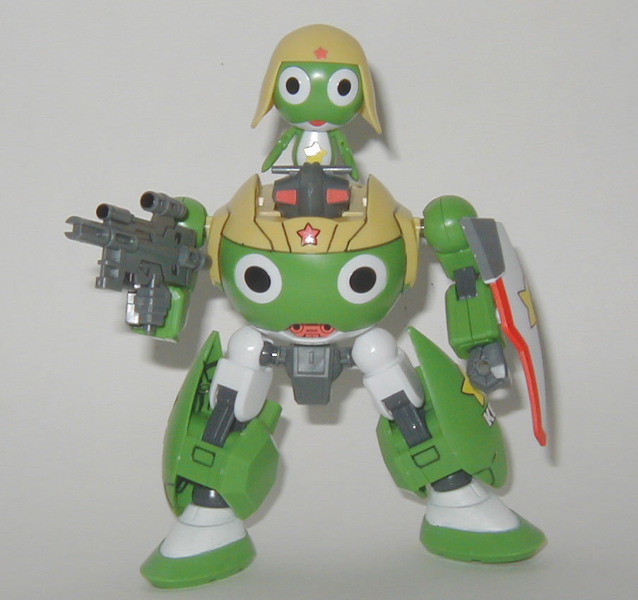 Keroro looks pretty happy riding on top of his mecha. I'd be pretty happy too if I had a mecha like that to pilot.
