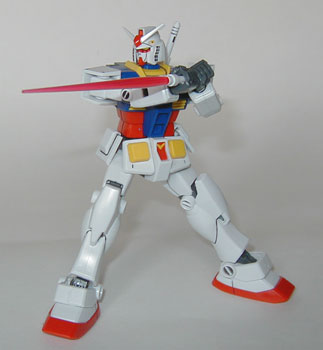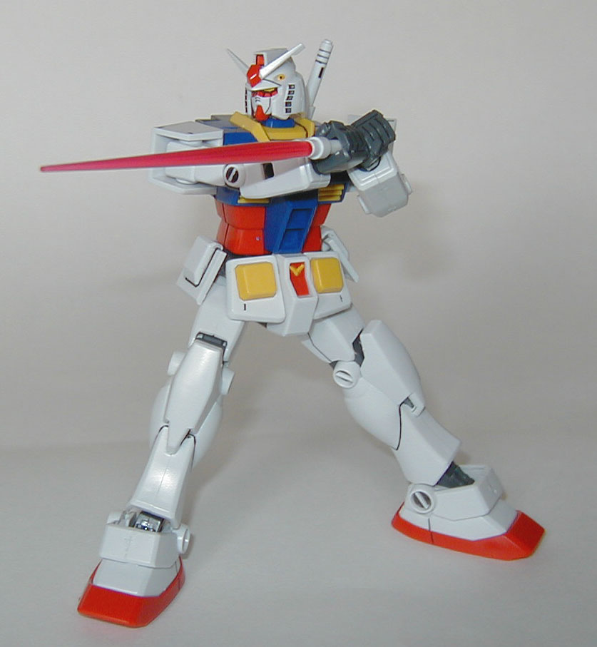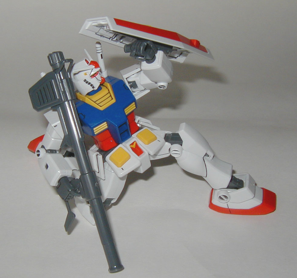 As you can see from the pics, this is a very fun and very poseable Gundam model. Most Gunpla can be rather stiff, but I am very impressed with the poseability of this one. I'd say that it's on par with an action figure, and it is very sturdy, unlike my Zeta Gundam model. This Gundam can hold the beam rifle with both hands as well as holding the beam saber with both hands. I wish all Gunpla were this solid