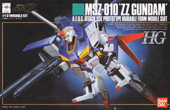 I started this model a year ago in January of '07. I never finished it because the crappy Testors airbrush of mine had broken, and I wanted to do the huge booster pack of the ZZ Gundam a bluish-gray color instead of the default color. I had assembled this kit a year ago, hand-painted where necessary, and applied the panel lines with the flat black enamel plus Zippo trick. This HG model also features the "System Injection" style, which means that little paint is required because the colored plastics are fused together. For the most part, I did not use the stickers it came with because these cheap-looking stickers are annoying and I was able to achieve a much better look with hand-brushing enamels instead. I only used the black dotted stickers for the legs and I chose not to apply the big "010" sticker on the chest, especially since I never saw this number on the mecha in the anime.