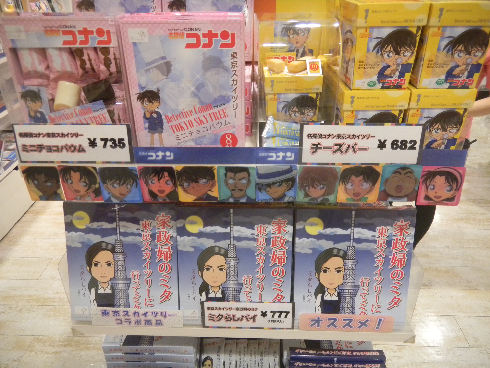 Evangelion and Detective Boy Conan Sky Tree souvenir snacks.