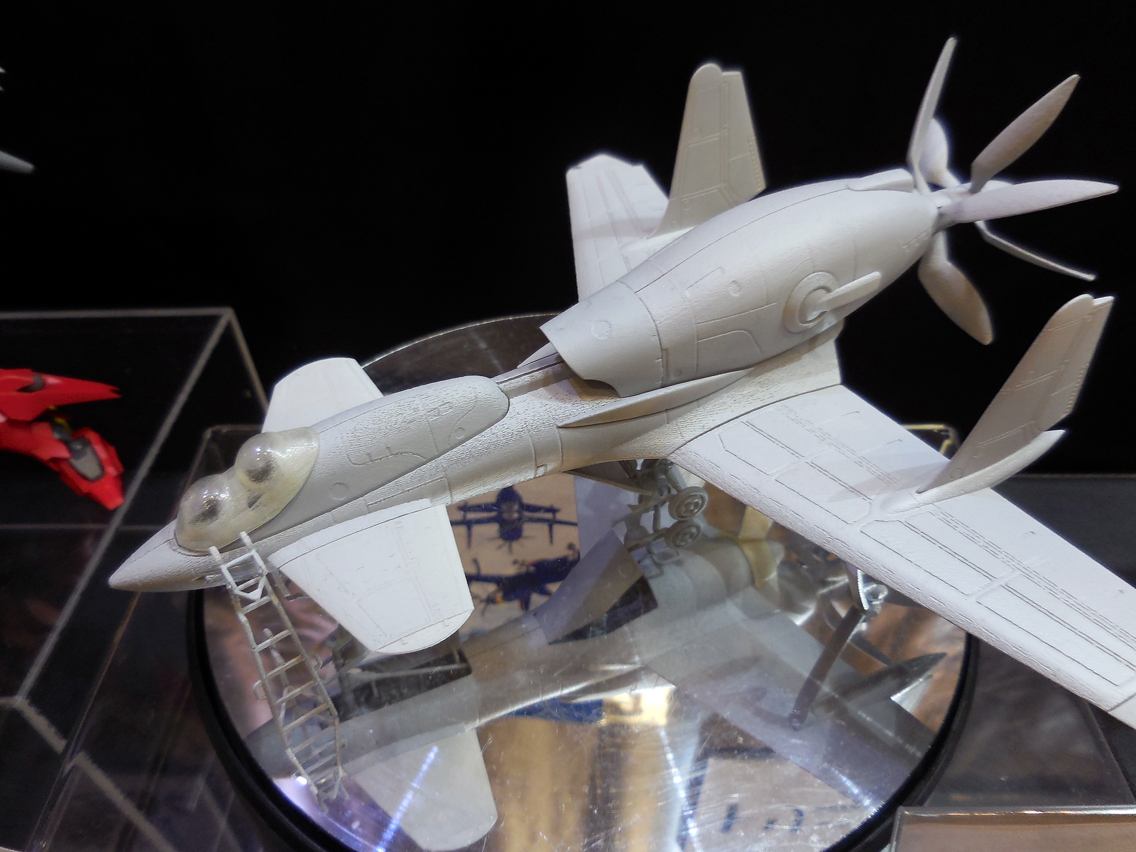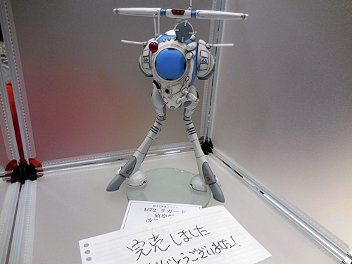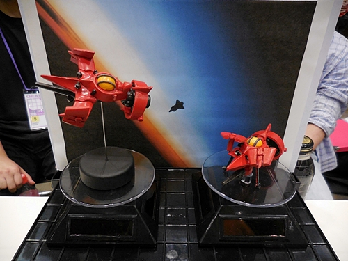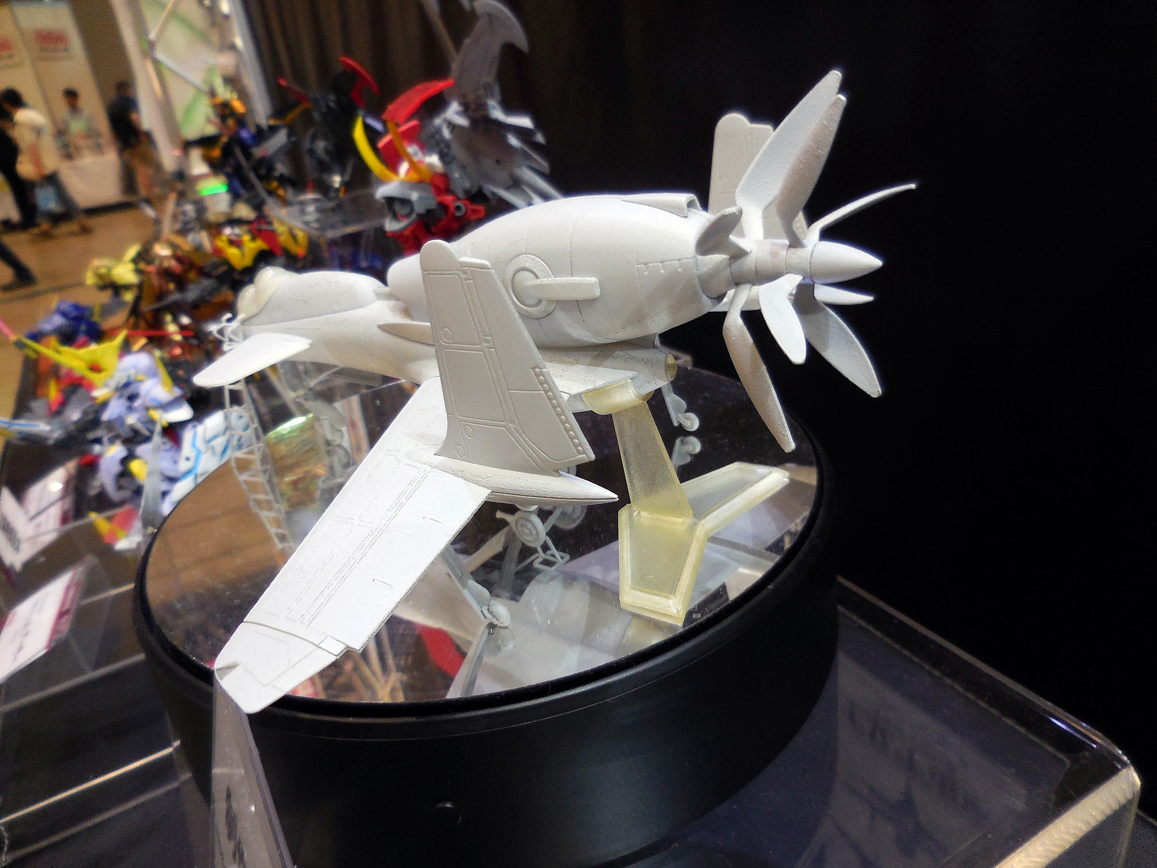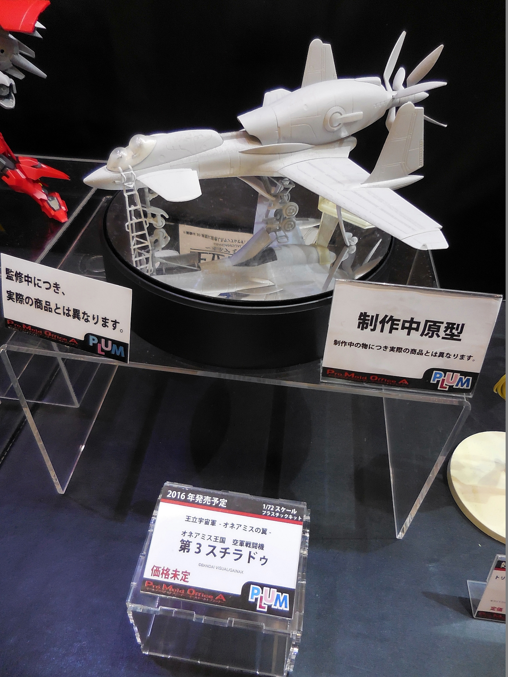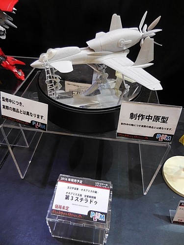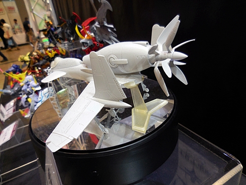 This is what I was hoping to see at Plum's booth! This is a 3D-printed mockup of what their plastic model of the plane from the anime, Royal Space Force: The Wings of Honneamise, will look like. It's slated for release next year!
