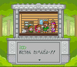 The rendered animation that starts the game is phenomenal. This alone is worth taking a look at. I'm not very technical, but I have noticed that Super Famicom games generally do not feature rendered animations that are more typical of PC Engine CD or Sega CD games, or even the Megadrive/Genesis for that matter. The majority of modern-day games opt for FMV animation sequences, but I just don't see it as a labor of love as the rendered animations in 16-bit video games. Perhaps it's the processor speed limitations, or the amount of ROM memory required to store these animation frames, but usually you just don't see the same quality of rendered animation on the SFC as on other consoles. Quite a lot of SFC animated intros are made of still images or what appear to be paper cutouts moving around, and maybe throw in some Mode 7 graphics capabilities to somehow impress the player. DoReMi Fantasy, however, proves that the SFC is capable of decent rendered animation.