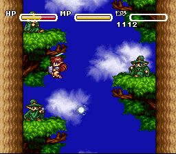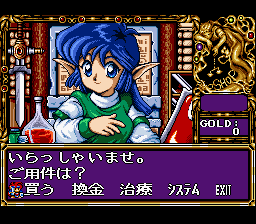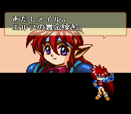 Originally on the NEC PC-99/98, Popuru Meiru has also been ported to the PC Engine and the Sega CD. This port to the Super Famicom is one of the few ports that Falcom themselves have been involved with, so purists should have no complaints. The Sega CD version was released as "Popful Mail" in English by Working Designs. Working Designs was both a blessing and a curse: they released many great JRPGs and other games from Japan that other companies would not have considered doing so and as a result we have the legendary Lunar series released in English, but at the same time they couldn't resist messing around with the games' programming to raise the games' difficulty levels, such as Treasure's Silhouette Mirage. They made Popful Mail brutally unforgiving by increasing the amount of damage you take from enemies, causing English gamers to constantly save their game's progress. For the original Japanese version, the voice actress for Mail is Megumi Hayashibara, thus causing plenty of comparisons of Mail to Lina Inverse of the anime Slayers.