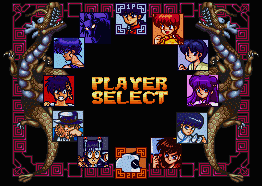 You get to choose between twelve characters: Ranma Saotome (boy), Ranma Saotome (girl), Akane Tendo, Shampoo, Mousse, Ukkyo Kuonji, Genma Saotome (as a panda), Hikaru Gosunkugi, Bakuchioh King, Pantsuo Taro (as a boy), and Pantsuo Taro (as a hideous monster-like thing). When you play one of the first ten characters in Story mode, Taro is the end boss of the game, and you must beat him in both his boy form and his cursed form. After that, you can play either version of Taro in the Story mode. The end boss for him is Happosai, who is a real slippery little fellow. Because of his size, he's pretty hard to beat with any other character than Taro.