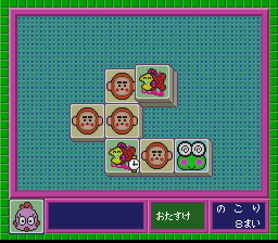 However, don't expect much of a challenge with this game. Sanrio Shanghai is, after all, a child's game. The tiles are of Sanrio characters instead of mahjong tiles. They are very large, and the tile layout is rather simplified.