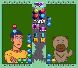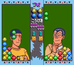 The Taisen Puzzle Dama series is basically the same game, but with different characters inserted, whether it's Tokimeki Memorial or Twinbee or what have you. This is the only Taisen Puzzle Dama game on the Super Famicom, as far as I know. The game is basically a Puyo Puyo-type game with its own unique twist.